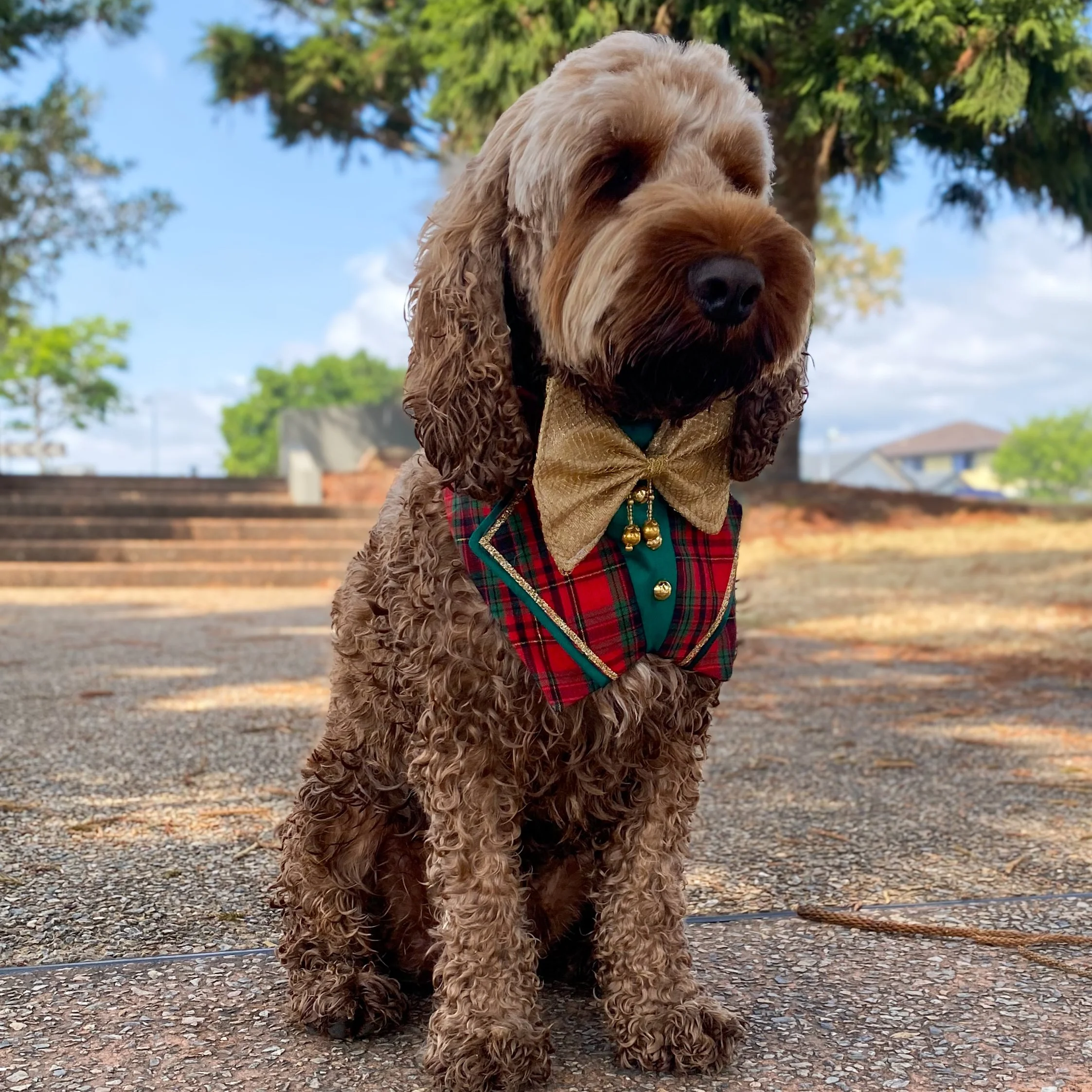 Every star needs their spotlight, and The Golden Interlude is that flawless moment between the standing ovations. This bow isn’t just an accessory, it’s the exclamation mark of your pup’s Christmas look. Rich tartan, trimmed with golden notes, designed for the photo ops you know are coming.”
